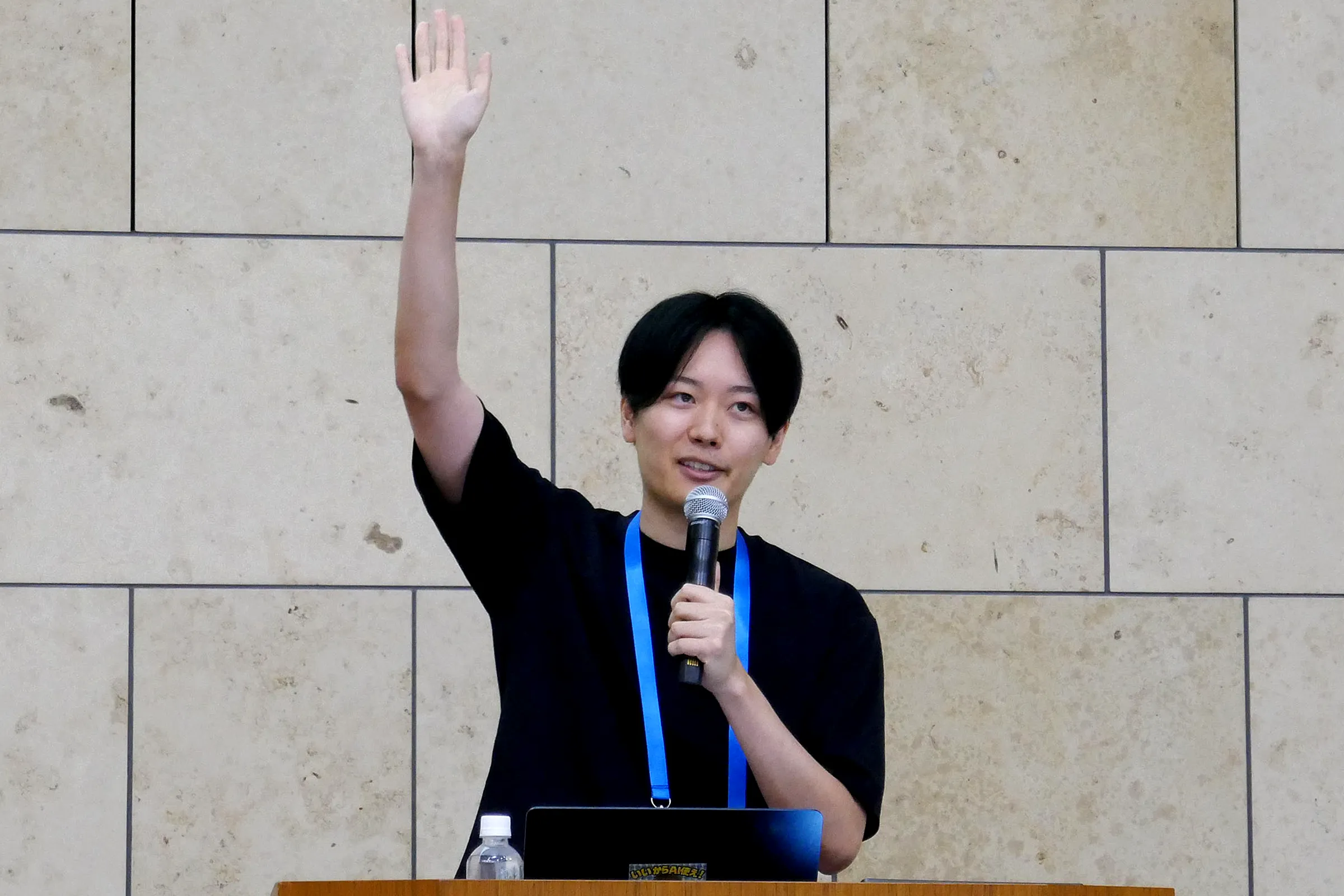 見学者からはアイデアに賛同しながらも「LLMの判定精度をどう高めるか」といった技術的な課題に加え、「どうやってこの仕組みを高齢者の家庭に置いてもらうか」という社会実装方法についても質問が寄せられ、熱心に意見を交わしていました。